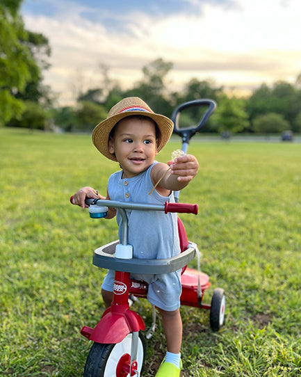 The 3-in-1 tricycle evolves as your child learns to ride, from guided stroller-style rides to full-on pedal power. Parents can steer and push early on, then remove the handle and let little riders take control of the tricycle when they’re ready. Enjoy years of laughter, confidence, and unforgettable rides together with this tricycle for toddlers.